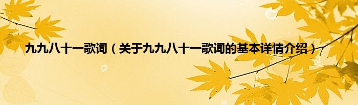 本文关于九九八十一歌词的基本详情介绍就讲解完毕,希望对大家有所帮助。
