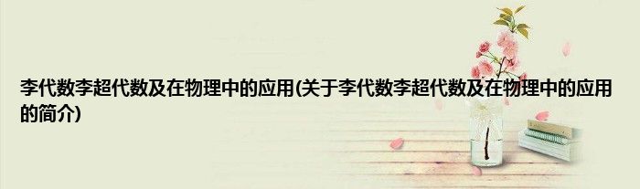 本文关于李代数李超代数及在物理中的应用的简介就讲解完毕,希望对大家有所帮助。