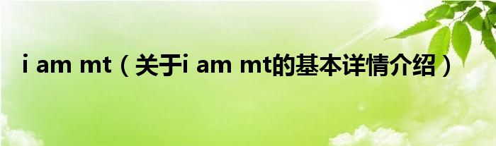 本文关于i am mt的基本详情介绍就讲解完毕,希望对大家有所帮助。