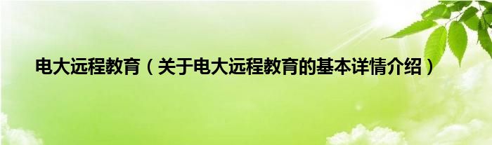 本文关于电大远程教育的基本详情介绍就讲解完毕,希望对大家有所帮助。