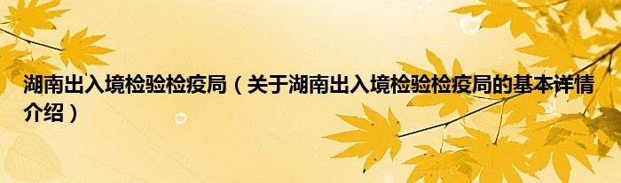 湖南出入境检验检疫局(关于湖南出入境检验检疫局的基本详情介绍)