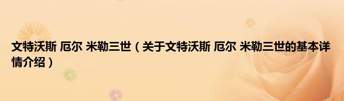 本文关于文特沃斯 厄尔 米勒三世的基本详情介绍就讲解完毕,希望对大家有所帮助。