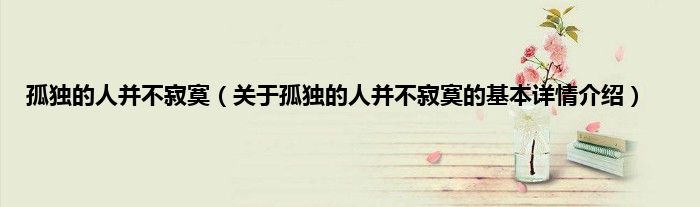 本文关于孤独的人并不寂寞的基本详情介绍就讲解完毕,希望对大家有所帮助。