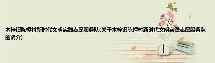 本文关于木梓镇陈樟村新时代文明实践志愿服务队的简介就讲解完毕,希望对大家有所帮助。