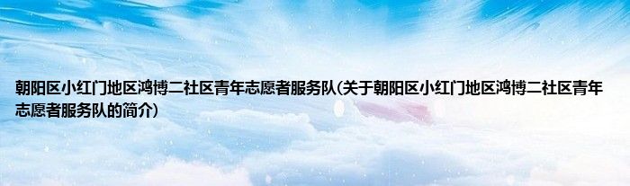 1、 朝阳区小红门地区鸿博二社区青年志愿者服务队是由朝阳区小红门地区青年志愿者服务队领导下的志愿团体。