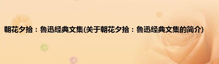 本文关于朝花夕拾:鲁迅经典文集的简介就讲解完毕,希望对大家有所帮助。