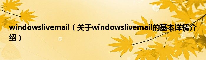 本文关于windowslivemail的基本详情介绍就讲解完毕,希望对大家有所帮助。