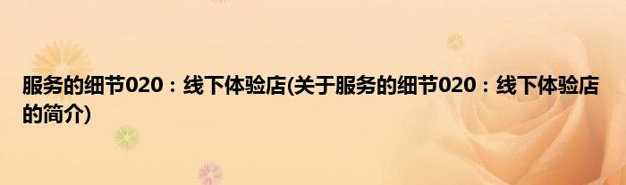 本文关于服务的细节020:线下体验店的简介就讲解完毕,希望对大家有所帮助。