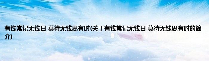 有钱常记无钱日 莫待无钱思有时(关于有钱常记无钱日 莫待无钱思有时的简介)