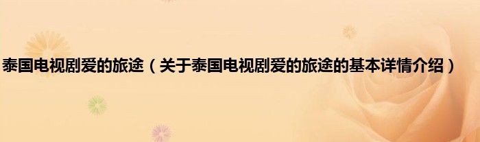 本文关于泰国电视剧爱的旅途的基本详情介绍就讲解完毕,希望对大家有所帮助。