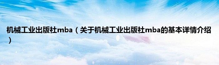 本文关于机械工业出版社mba的基本详情介绍就讲解完毕,希望对大家有所帮助。