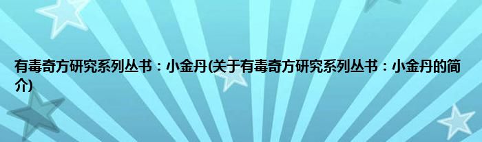 本文关于有毒奇方研究系列丛书:小金丹的简介就讲解完毕,希望对大家有所帮助。