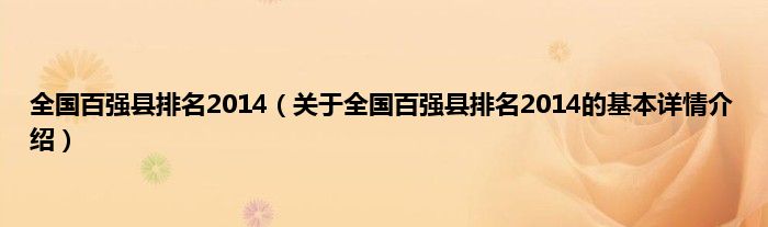 本文关于全国百强县排名2014的基本详情介绍就讲解完毕,希望对大家有所帮助。