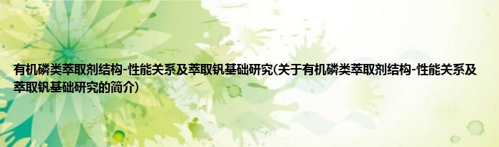 本文关于有机磷类萃取剂结构-性能关系及萃取钒基础研究的简介就讲解完毕,希望对大家有所帮助。