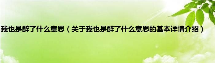 我也是醉了什么意思(关于我也是醉了什么意思的基本详情介绍)