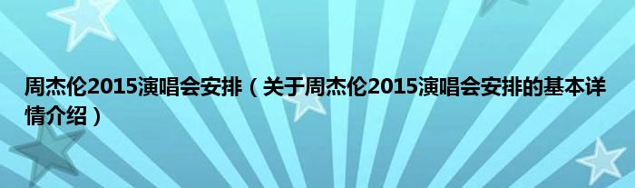 本文关于周杰伦2015演唱会安排的基本详情介绍就讲解完毕,希望对大家有所帮助。