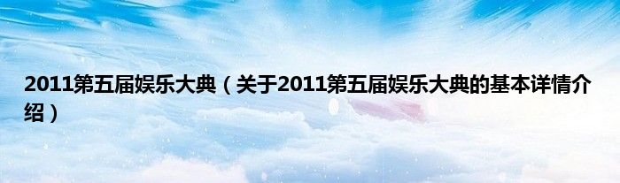 本文关于2011第五届娱乐大典的基本详情介绍就讲解完毕,希望对大家有所帮助。