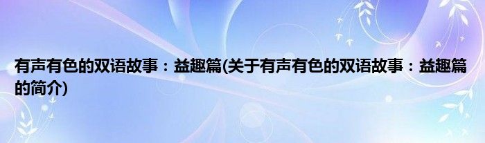 本文关于有声有色的双语故事:益趣篇的简介就讲解完毕,希望对大家有所帮助。