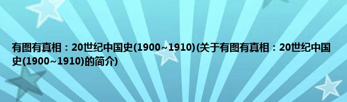 本文关于有图有真相:20世纪中国史(1900~1910)的简介就讲解完毕,希望对大家有所帮助。