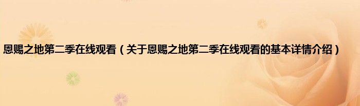 本文关于恩赐之地第二季在线观看的基本详情介绍就讲解完毕,希望对大家有所帮助。