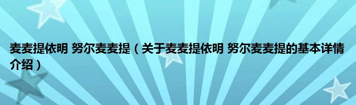 本文关于麦麦提依明 努尔麦麦提的基本详情介绍就讲解完毕,希望对大家有所帮助。