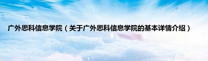 广外思科信息学院(关于广外思科信息学院的基本详情介绍)