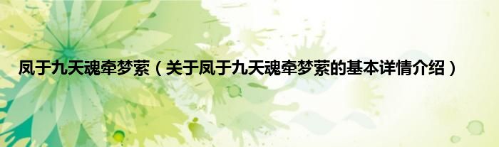 本文关于凤于九天魂牵梦萦的基本详情介绍就讲解完毕,希望对大家有所帮助。