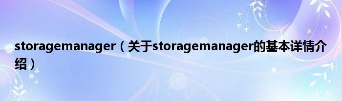 本文关于storagemanager的基本详情介绍就讲解完毕,希望对大家有所帮助。