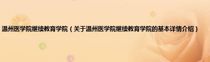 本文关于温州医学院继续教育学院的基本详情介绍就讲解完毕,希望对大家有所帮助。
