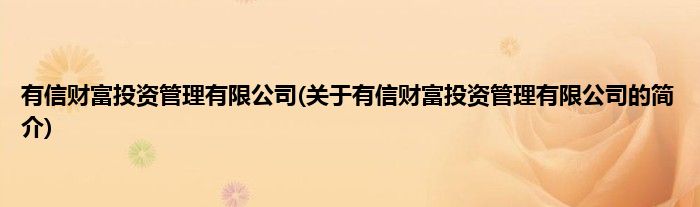 本文关于有信财富投资管理有限公司的简介就讲解完毕,希望对大家有所帮助。