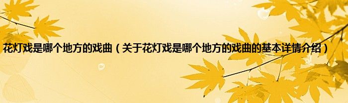 本文关于花灯戏是哪个地方的戏曲的基本详情介绍就讲解完毕,希望对大家有所帮助。