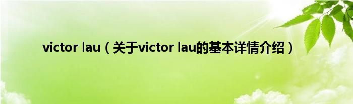 本文关于victor lau的基本详情介绍就讲解完毕,希望对大家有所帮助。