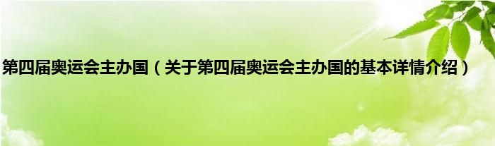 本文关于第四届奥运会主办国的基本详情介绍就讲解完毕,希望对大家有所帮助。