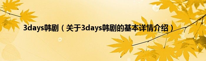 本文关于3days韩剧的基本详情介绍就讲解完毕,希望对大家有所帮助。