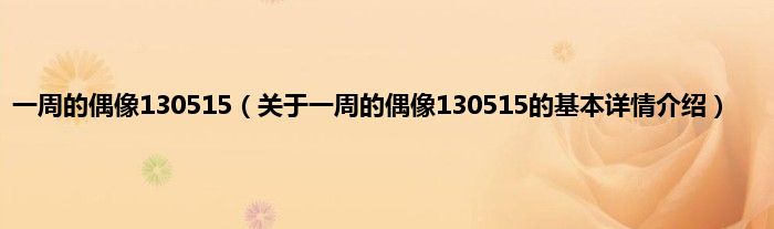 本文关于一周的偶像130515的基本详情介绍就讲解完毕,希望对大家有所帮助。