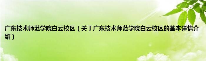 本文关于广东技术师范学院白云校区的基本详情介绍就讲解完毕,希望对大家有所帮助。