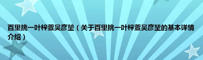 本文关于百里挑一叶梓萱吴彦堃的基本详情介绍就讲解完毕,希望对大家有所帮助。
