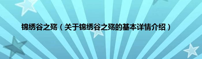 本文关于锦绣谷之殇的基本详情介绍就讲解完毕,希望对大家有所帮助。