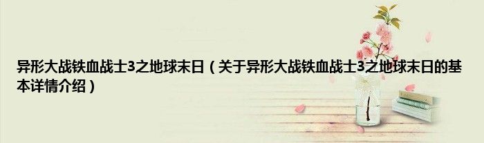 本文关于异形大战铁血战士3之地球末日的基本详情介绍就讲解完毕,希望对大家有所帮助。