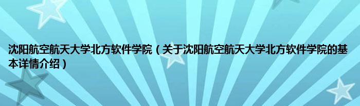 本文关于沈阳航空航天大学北方软件学院的基本详情介绍就讲解完毕,希望对大家有所帮助。