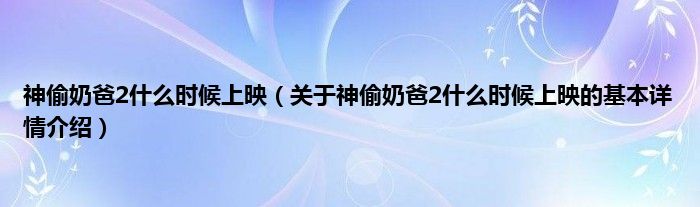 本文关于神偷奶爸2什么时候上映的基本详情介绍就讲解完毕,希望对大家有所帮助。