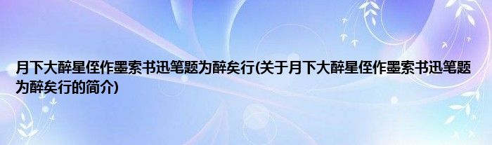 本文关于月下大醉星侄作墨索书迅笔题为醉矣行的简介就讲解完毕,希望对大家有所帮助。