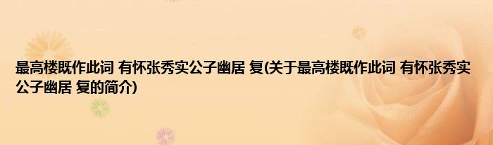 本文关于最高楼既作此词,有怀张秀实公子幽居,复的简介就讲解完毕,希望对大家有所帮助。