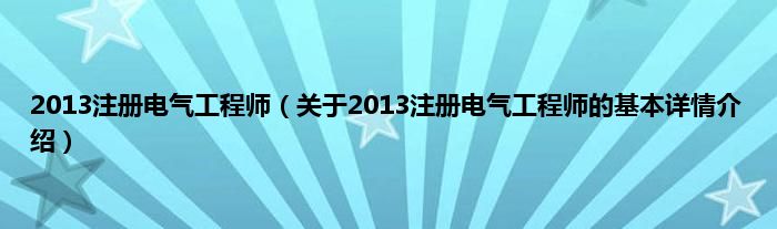 2013注册电气工程师(关于2013注册电气工程师的基本详情介绍)