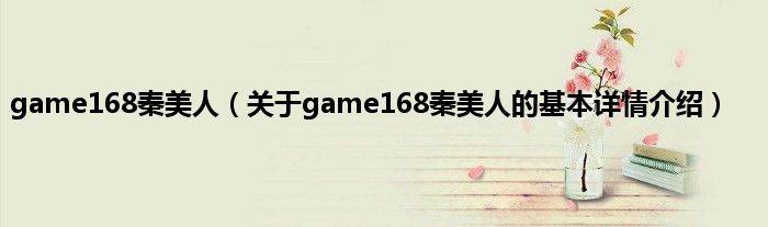 本文关于game168秦美人的基本详情介绍就讲解完毕,希望对大家有所帮助。