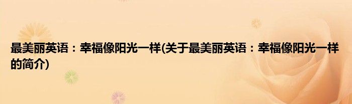 本文关于最美丽英语:幸福像阳光一样的简介就讲解完毕,希望对大家有所帮助。