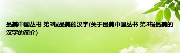 本文关于最美中国丛书。第3辑最美的汉字的简介就讲解完毕,希望对大家有所帮助。