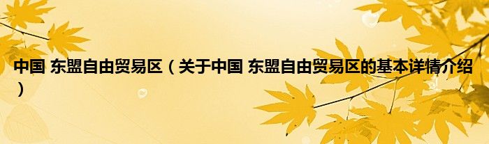 本文关于中国 东盟自由贸易区的基本详情介绍就讲解完毕,希望对大家有所帮助。