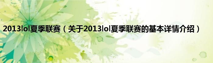 本文关于2013lol夏季联赛的基本详情介绍就讲解完毕,希望对大家有所帮助。