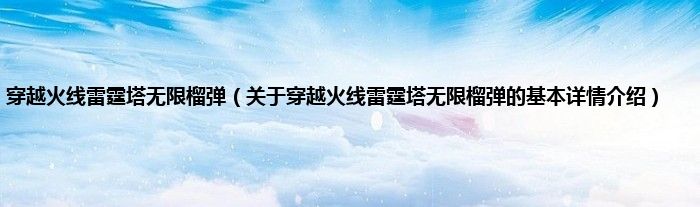 本文关于穿越火线雷霆塔无限榴弹的基本详情介绍就讲解完毕,希望对大家有所帮助。